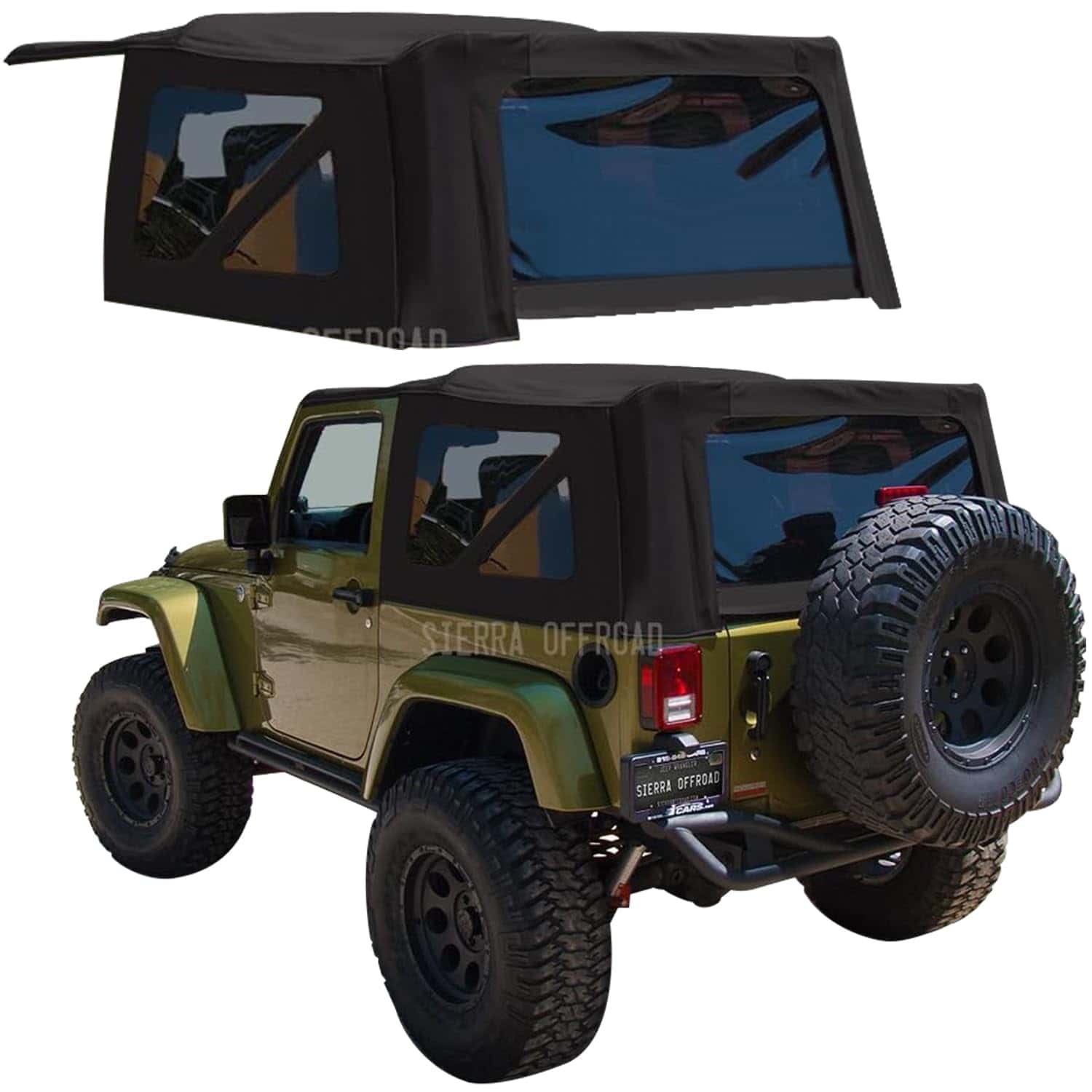 (FABRIC ONLY) Sierra Offroad Soft Top for 2007 to 2018 Jeep Wrangler JK – Black, Twill Canvas – 2 Door Jeep Soft Top with 40 MIL PRESS POLISHED TINTED WINDOWS – Factory Precision Fit Replacement – No Upper Door Skins