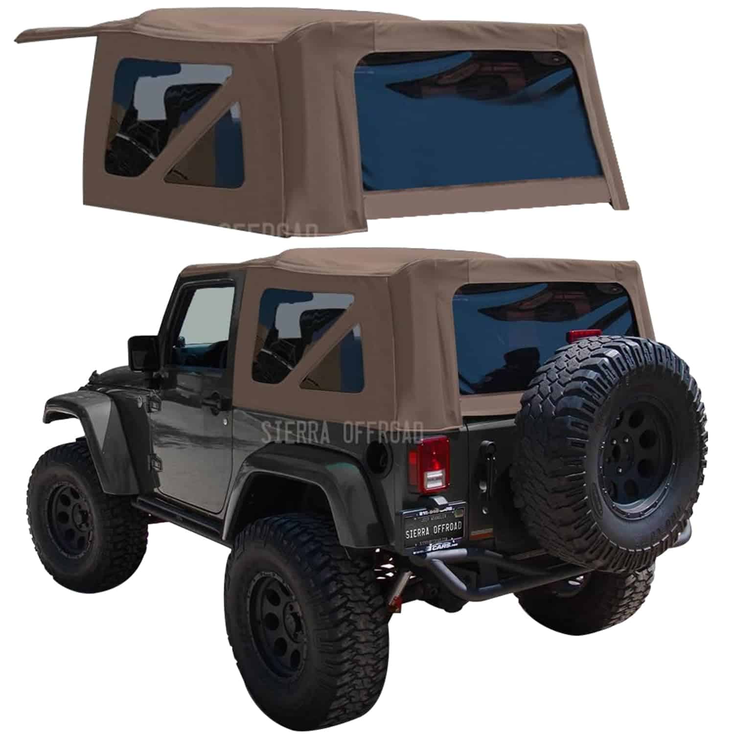 (FABRIC ONLY) Sierra Offroad Soft Top for 2010 to 2018 Jeep Wrangler JK – Saddle, Sailcloth Vinyl – 2 Door Jeep Soft Top with Rear Plastic Tinted Windows – Factory Precision Fit Replacement – No Upper Door Skins