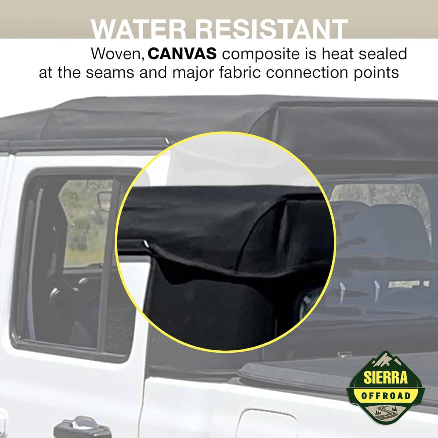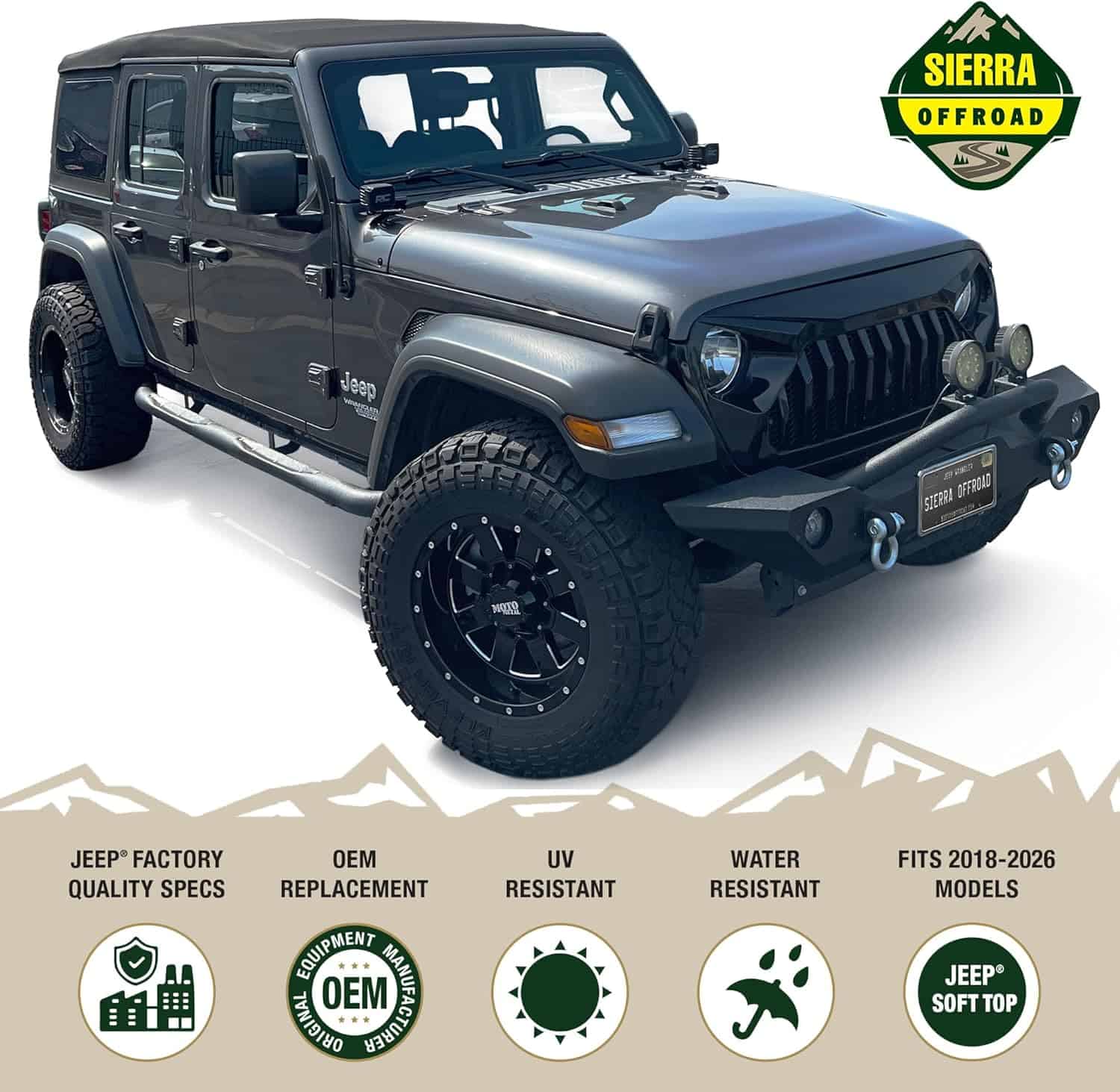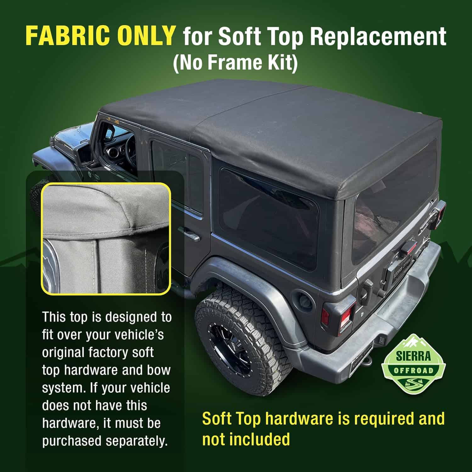 (FABRIC ONLY) Sierra Offroad Soft Top for 2018 to 2026 Jeep Wrangler JL – Black, Twill Canvas – 4 Door Wrangler Soft Top with Rear Plastic 31% Tinted Polished Windows – Factory Precision Fit Replacement – No Upper Door Skins
